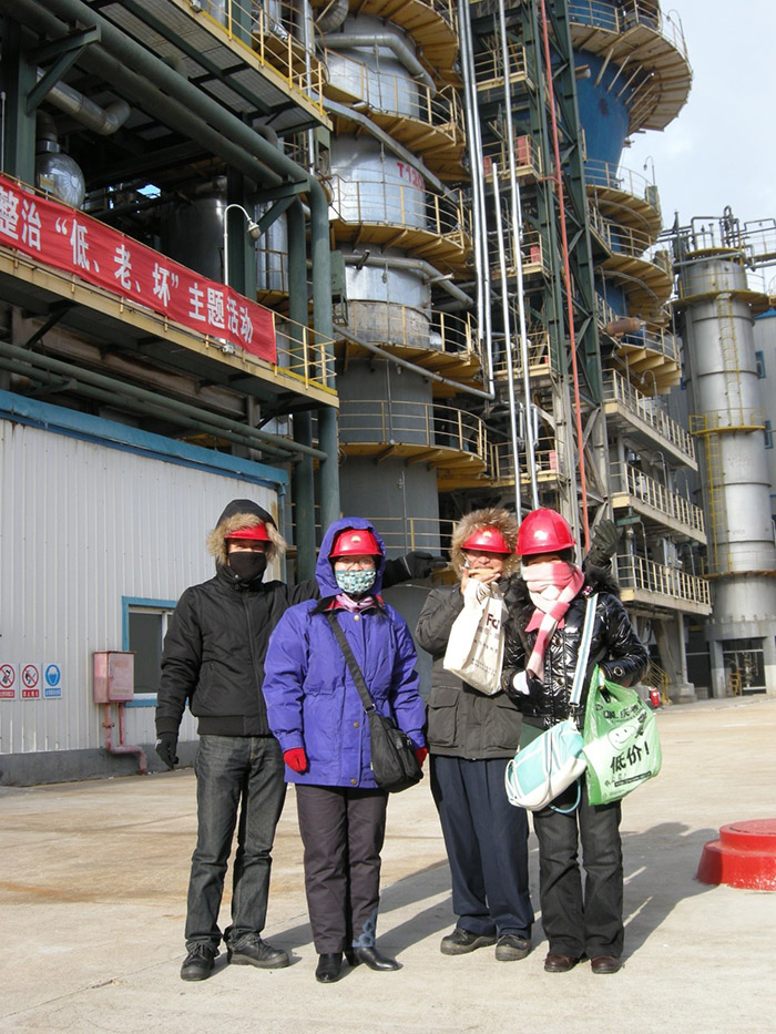 師父首先教的是“愛崗敬業(yè)”。記得我們做的第一個比較大的廠外設計項目是有關大慶煉化2#常減壓裝置改造的,那會兒正是嚴冬時節(jié)。李雪第一次跟師父出差,到大慶煉化看現(xiàn)場,拿著平面布置圖和工藝流程圖跟著師父身后跑。戶外的溫度零下十幾度,我們把能保暖的衣服全穿身上了。但出發(fā)時太低估了東北的寒冷,師父腳上穿的還是在岳陽的單層皮鞋,身上的羽絨服在外堅持不了半個小時,就得趕緊跑回操作室回回暖。即使是這樣,師父還是帶著我認真仔細地把現(xiàn)場情況勘查了一遍,還在這呼嘯地寒風中,講解現(xiàn)場的各種設備及其特點。我真不確定當時聽懂了多少,只記得我們在現(xiàn)場安全帽下的頭發(fā)、眉毛上吊著的一縷縷冰棱子。晚上回到賓館,師父還抱著一杯熱水站在身后,手把手教我看圖紙、畫流程。當時想來是她對我們的特別關照,后來才發(fā)現(xiàn)她是怕我們新來做不好,只有她親自參與畫圖了心里才有底。