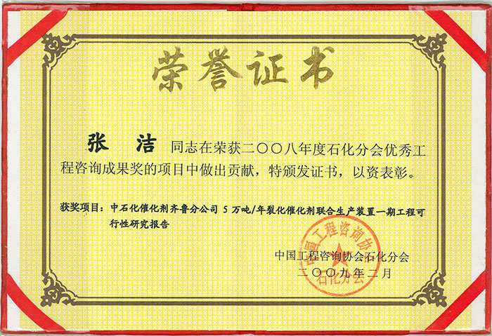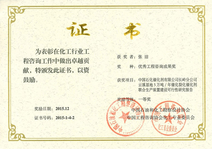 1991年7月,張潔師父自中南大學(xué)畢業(yè),分配到長(zhǎng)煉催化劑廠超穩(wěn)分子篩車間工作。1995年以比較豐富的實(shí)操和工作業(yè)績(jī),被選調(diào)進(jìn)長(zhǎng)煉石油化工設(shè)計(jì)院工藝室。轉(zhuǎn)眼二十多年過去了,在這些年間,師父負(fù)責(zé)設(shè)計(jì)的項(xiàng)目先后斬獲諸多榮譽(yù),主要的有:2006年,《RAX-2000AX型吸附劑的開發(fā)及工業(yè)應(yīng)用》獲中石化集團(tuán)公司優(yōu)秀工程設(shè)計(jì)二等獎(jiǎng);2009年,《中石化催化劑齊魯分公司5萬噸/年裂化催化劑聯(lián)合生產(chǎn)裝置一期工程可行性研究報(bào)告》榮獲中國(guó)工程咨詢協(xié)會(huì)石化分會(huì)優(yōu)秀工程咨詢成果獎(jiǎng);2013年,《中國(guó)石油化工股份有限公司催化劑齊魯分公司50000噸/年裂化催化劑聯(lián)合生產(chǎn)裝置一期工程》獲中石化集團(tuán)公司優(yōu)秀工程設(shè)計(jì)二等獎(jiǎng);2015年,《中國(guó)石化催化劑有限公司長(zhǎng)嶺分公司云溪基地5萬噸/年催化裂化催化劑聯(lián)合生產(chǎn)裝置建設(shè)可行性研究報(bào)告》獲中國(guó)石油化工勘察設(shè)計(jì)協(xié)會(huì)優(yōu)秀工程咨詢成果一等獎(jiǎng)。2019年12月,她被公司評(píng)定為2019年度最佳員工!