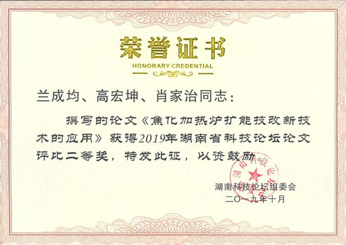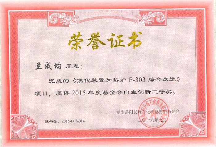 好風憑借力,送我上青云。這十幾年工作期間,師父正是靠著這種鍥而不舍、堅忍不拔的精神,不斷學習總結提高,取得了上好的業(yè)績,自己也得到比較好的成長。他完成了公司第一套大型浮頂罐設計、第一套完整加熱爐設計、第一套撓性管板設備設計,整理匯編了全套儲罐設計計算程序、加熱爐框架與構件局部強度校核計算程序、折邊撓性管板結構計算程序,參與了設備標準圖的制定、機械專業(yè)標準文件的編寫,獲得了《新型加熱爐輻射管支架》、《儲罐用蒸汽加熱器管束系統(tǒng)》等14項實用新型專利或專有技術。他完成設計的《焦化裝置加熱爐F-303綜合改造》項目,獲得2015年度長煉科協基金會自主創(chuàng)新二等獎。他作為第一作者的《焦化加熱爐擴能技改新技術的應用(完整版)》論文獲得2019年度湖南省科技論壇論文評比二等獎。2013年、2018年兩次被評為公司優(yōu)秀共產黨員。2017年、2019年兩次被評為中石化長嶺煉化公司優(yōu)秀員工。2020年3月,榮獲2019年度岳陽市“巴陵卓越工程師”稱號。