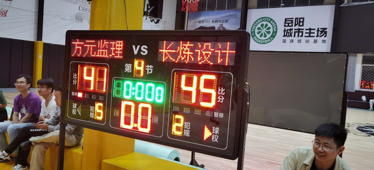伴隨著一聲響亮的哨聲,比賽開始了,雙方球員立刻開始了激烈的比拼爭奪。方元監(jiān)理隊伍整齊、實力滿滿,旗開得勝、拿下首分,引起一陣歡呼。我們設計略顯準備倉促、配合缺位,但隊員們不甘落后、緊追比分。雙方隊員在賽場上充滿激情的揮灑汗水,展示自己優(yōu)秀的球技,賣力的“表演”引起場外觀眾高聲吶喊。設計隊的比分逐漸落后下來,到上半場(第2節(jié))結束,比分竟相差10多分。