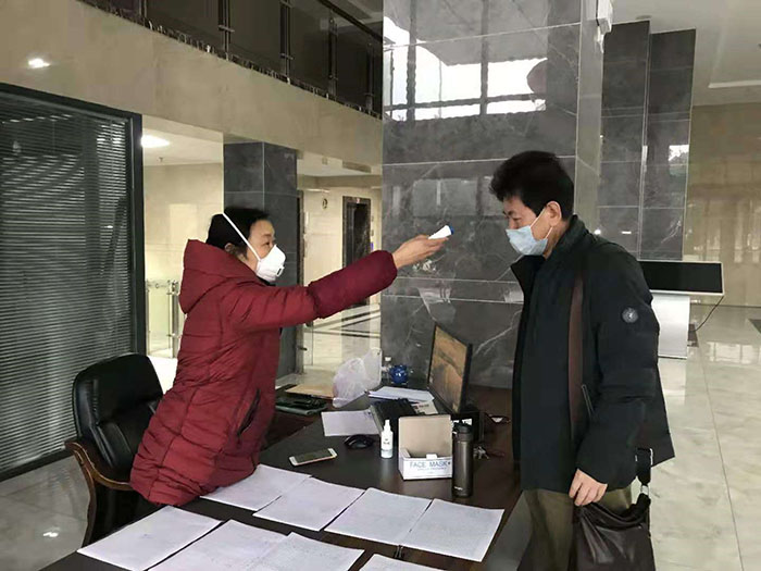 復工伊始,為確保員工安全,減少員工間的相互接觸,公司要求大家少走動、不聚集,盡量采用遠程辦公將工作帶回家。對進入辦公樓的人員,每日堅持體溫測量登記、發(fā)放口罩。
