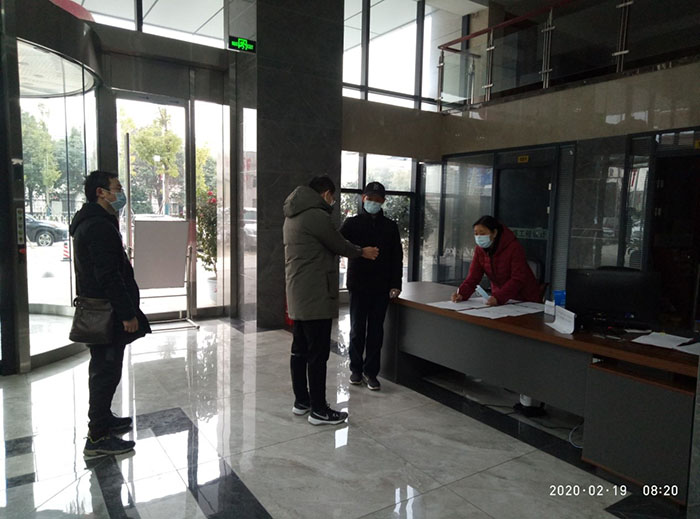 2月10日一大早,公司辦公大樓里,大堂值班經(jīng)理曾桔平就用紅外線測溫儀為趕來復工的每一位員工測量體溫、登記造冊、發(fā)放口罩,這也成為公司春節(jié)后復工從未有過的風景線。