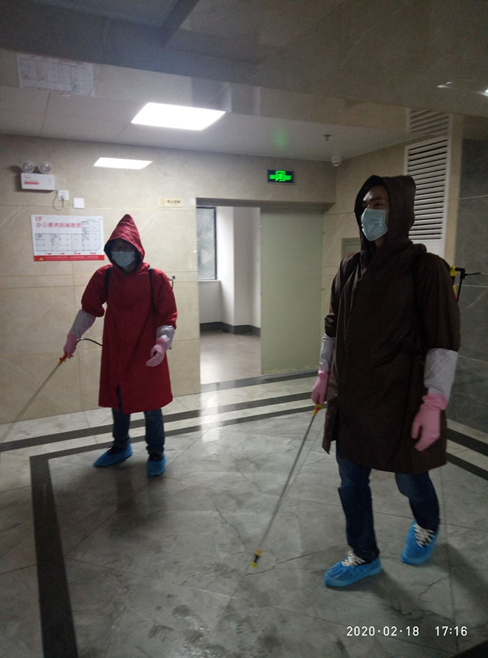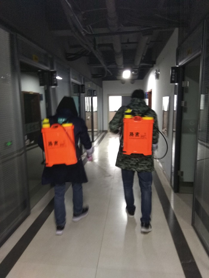 每日下班后,童陽和譚武兩個小伙子自己動手,堅持對辦公樓公共區(qū)域進行全方位的消毒,不留死角。工作之余,大家笑稱他倆終于體驗到了當農(nóng)民的感覺。
