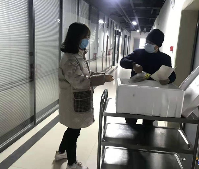 疫情當前,食堂原有的統(tǒng)一自助用餐模式難免造成聚集接觸。如何避免用餐人員聚集、飛沫傳播的風險,公司相關(guān)負責人絞盡腦汁,經(jīng)過數(shù)次線上會議討論,最終確定改為分餐配送制。即食堂人員將做好的飯菜分裝,用餐車推送到每層辦公樓;員工取回飯菜回到各自辦公桌單獨用餐,利用工位相對隔離;飯后,各自將餐盒放置到各樓層新設置的專門回收桶。