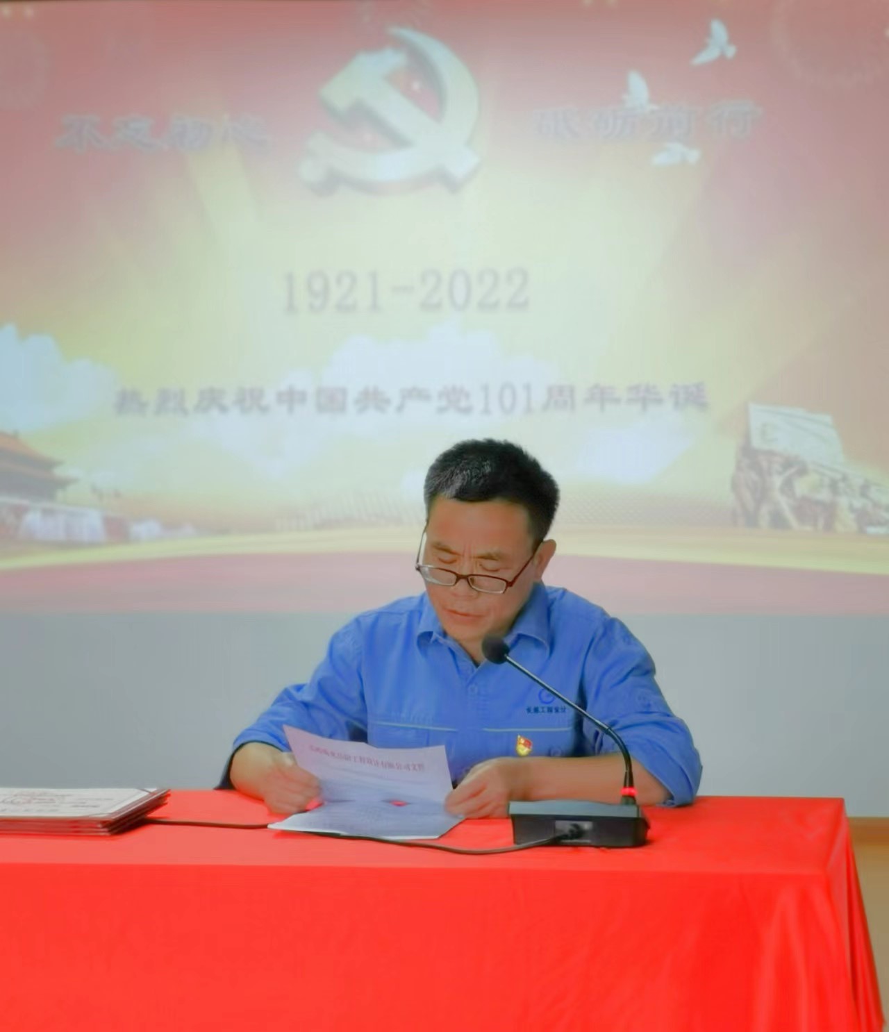 同心慶七一,喜迎二十大。7月1日下午,長嶺煉化岳陽工程設(shè)計有限公司慶祝中國共產(chǎn)黨成立101周年大會在公司二樓會議室隆重召開。在公司的50余名黨員歡聚一堂,重溫黨的光輝歷史,學(xué)習(xí)身邊優(yōu)秀黨員,學(xué)習(xí)黨徽黨旗條例,推進“四亮”主題活動!