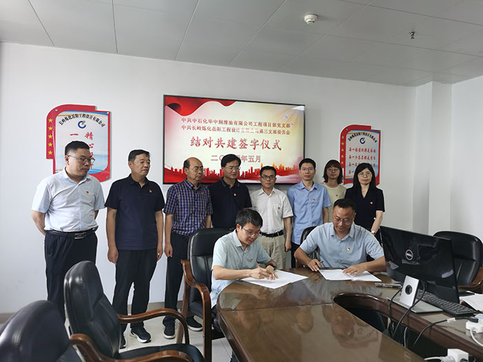 公司副總經(jīng)理、紀(jì)委書(shū)記蔡國(guó)球在致辭中強(qiáng)調(diào):結(jié)對(duì)共建是加強(qiáng)黨的建設(shè)、融入中心工作的重要舉措,希望雙方密切合作,共建共贏。華中潤(rùn)滑油有限公司總經(jīng)理助理吳小華在致辭中指出:武漢工廠搬遷項(xiàng)目是落實(shí)長(zhǎng)江大保護(hù)和綠色智能工廠的具體體現(xiàn),設(shè)計(jì)公司春節(jié)期間克服了眾多困難,創(chuàng)造了基礎(chǔ)設(shè)計(jì)的“武漢速度”,支部共建有利于雙方全方位合作,更好的發(fā)揮黨組織的戰(zhàn)斗堡壘作用。