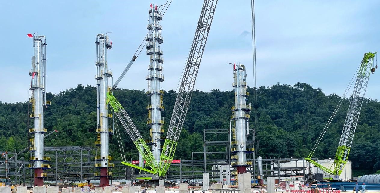 2024年7月14日15點(diǎn)整,在眾人期待的目光中,T604溶劑再生塔吊裝就位。至此,芳烴抽提裝置六具塔全部一次吊裝成功。